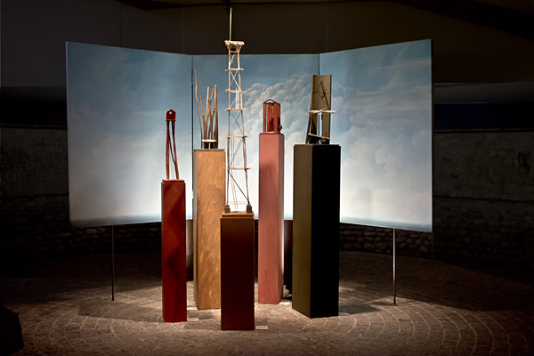 De pièces en pièces, les yeux pénètrent de subtils agencements de balsa, cordelettes, cartons peints, dressés comme des scènes à notre imaginaire. Allusives, elles appellent moins à notre savoir qu'à notre rêverie.